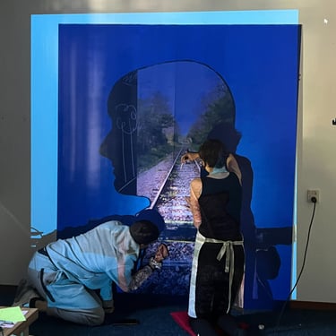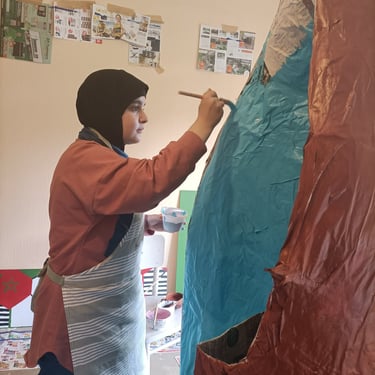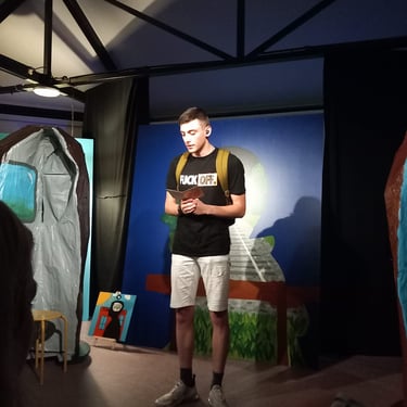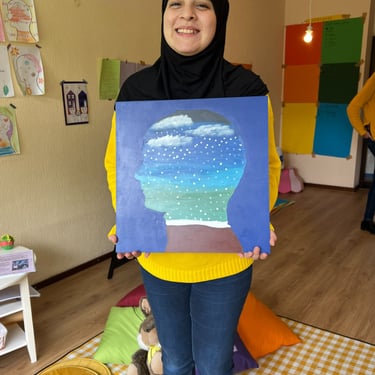 Voor het Limburgse theatergezelschap Het Laagland deed ik in 2023 mee aan een community art project genaamd 'Thuis in je Hoofd' geleid door Sarai Erkens. Samen met jongeren uit de wijk gingen we gesprekken aan over het thema 'wanneer voel jij je thuis?' De uitkomsten verwerkten we op een creatieve manier. Bijvoorbeeld in schilderijen of verrijdbare hoofden waar je in kan staan! We zijn ook naar een nabijgelegen jeugdinstelling gegaan (Koraal). Verschillende schilderijen zijn ontstaan, die op de flats in de wijk komen te hangen. Er kwam zelfs zo'n bijzonder verhaal los, dat we uiteindelijk geëindigd zijn met een toneelstuk. Dit stuk is gepresenteerd aan de wijkbewoners. In de link hieronder kan je het stuk lezen dat de plaatselijke krant hierover heeft geschreven.
