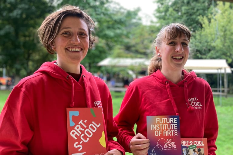 Art-S-Cool is een Haags collectief voor kunsteducatie gevestigd in de Schilderswijk. Ik heb verschillende workshops gegeven aan basisschoolkinderen, bijvoorbeeld in Haagse bibliotheken en op het Ooievaarsfestival. Veel van de werken van de kinderen zijn te zien op mijn instagram @moment.aal. In mijn lessen vind ik het belangrijk dat kinderen zich veilig voelen, dat ze nieuwe technieken of onderwerpen leren kennen en dat hun motoriekontwikkeling gestimuleerd wordt. Daarbij is het extra leuk als ze naar huis gaan met een product waar ze trots op zijn!