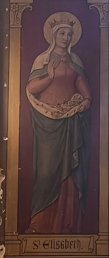 De heilige Elizabeth (1207-1231) was een koningin van de Duitse staat Thüringen, waar zij dankzij de bescherming van haar man, die haar ondersteunde en respecteerde, een ziekenhuis oprichtte waar zij armen verzorgde. Dit was nog niet eerder gezien in die tijd. Zij richtte zich vooral op zwangere vrouwen en jonge kinderen. Ze had kritiek op uitbuiting van de gewone mensen door de edelen. Ze ging hiervoor niet op de barricaden en voerde ook geen discussies; ze deed er gewoon niet aan mee. Bijvoorbeeld door niets te eten dat niet rechtmatig verkregen was. Dit zorgde voor veel onbegrip bij haar omgeving. Toen haar man overleden was, gaf ze al haar geld weg aan de armen. Haar aangetrouwde familie vond dit vreemd. Zij bleef zich inzetten voor haar idealen en weigerde opnieuw te trouwen, wat ervoor zorgde dat ze niet meer op de burcht (een soort kasteel) kon blijven wonen. Zij stierf alleen in Marburg. Drie jaar later werd zij heilig verklaard door de katholieke kerk.